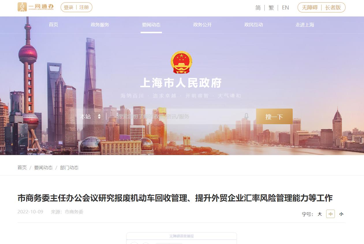 10月9日,市商務(wù)委主任、黨組書記顧軍主持召開主任辦公會議,研究審議報廢機(jī)動車回收管理實(shí)施辦法,促進(jìn)行業(yè)高質(zhì)量發(fā)展,部署支持企業(yè)提升匯率風(fēng)險管理能力,多措并舉推動外貿(mào)保穩(wěn)提質(zhì)。